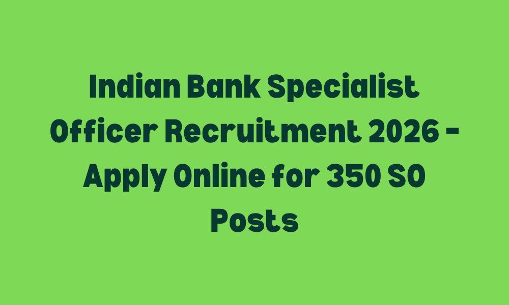 Indian Bank Specialist Officer Recruitment 2026 – Apply Online for 350 SO Posts